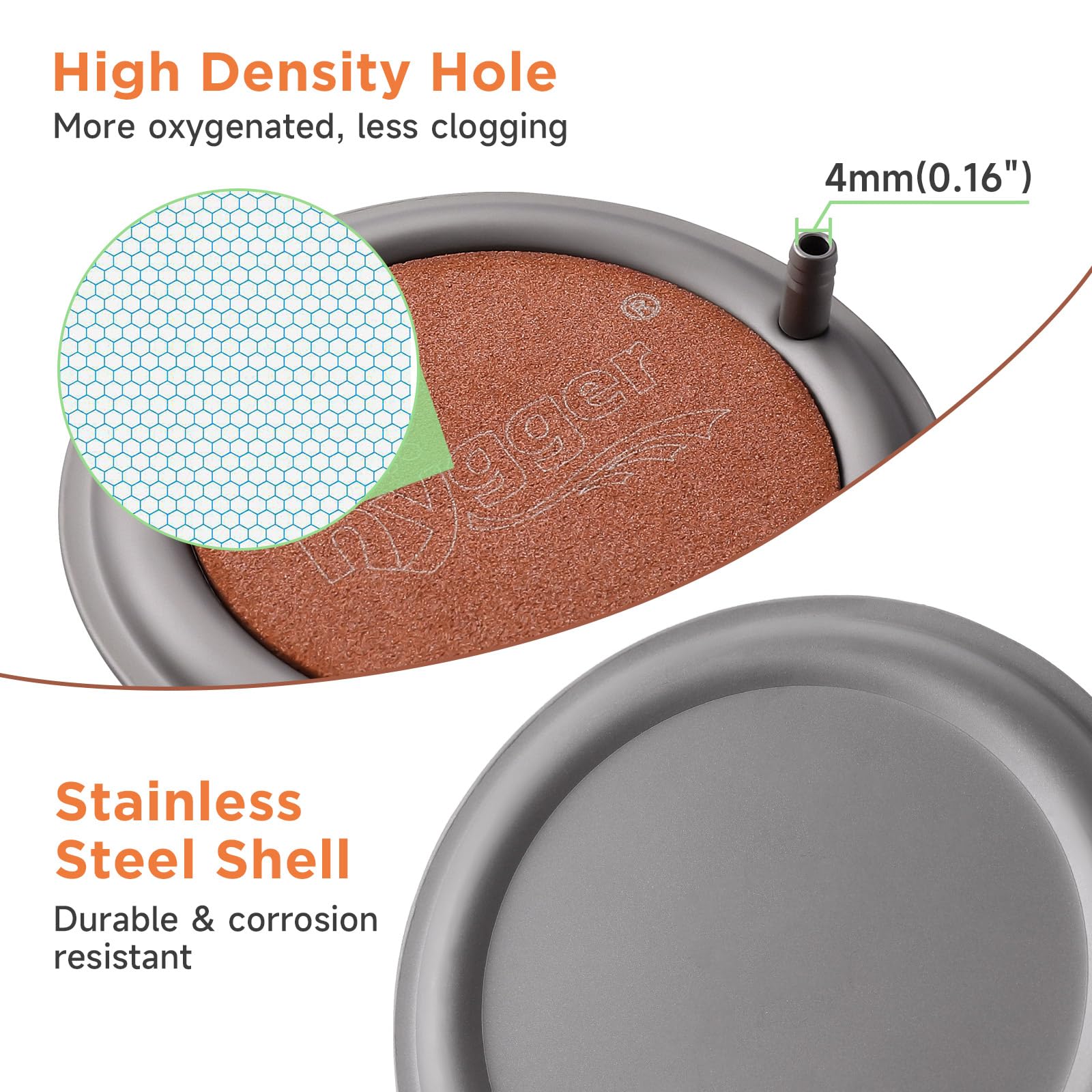 - Durable Material: Compared with traditional air stones, our mini aerator stone is made of sintered nano material and a stainless steel base. This makes it exceptionally sturdy, durable, dense bubble pores, not easy to clog, and safe for your fish.