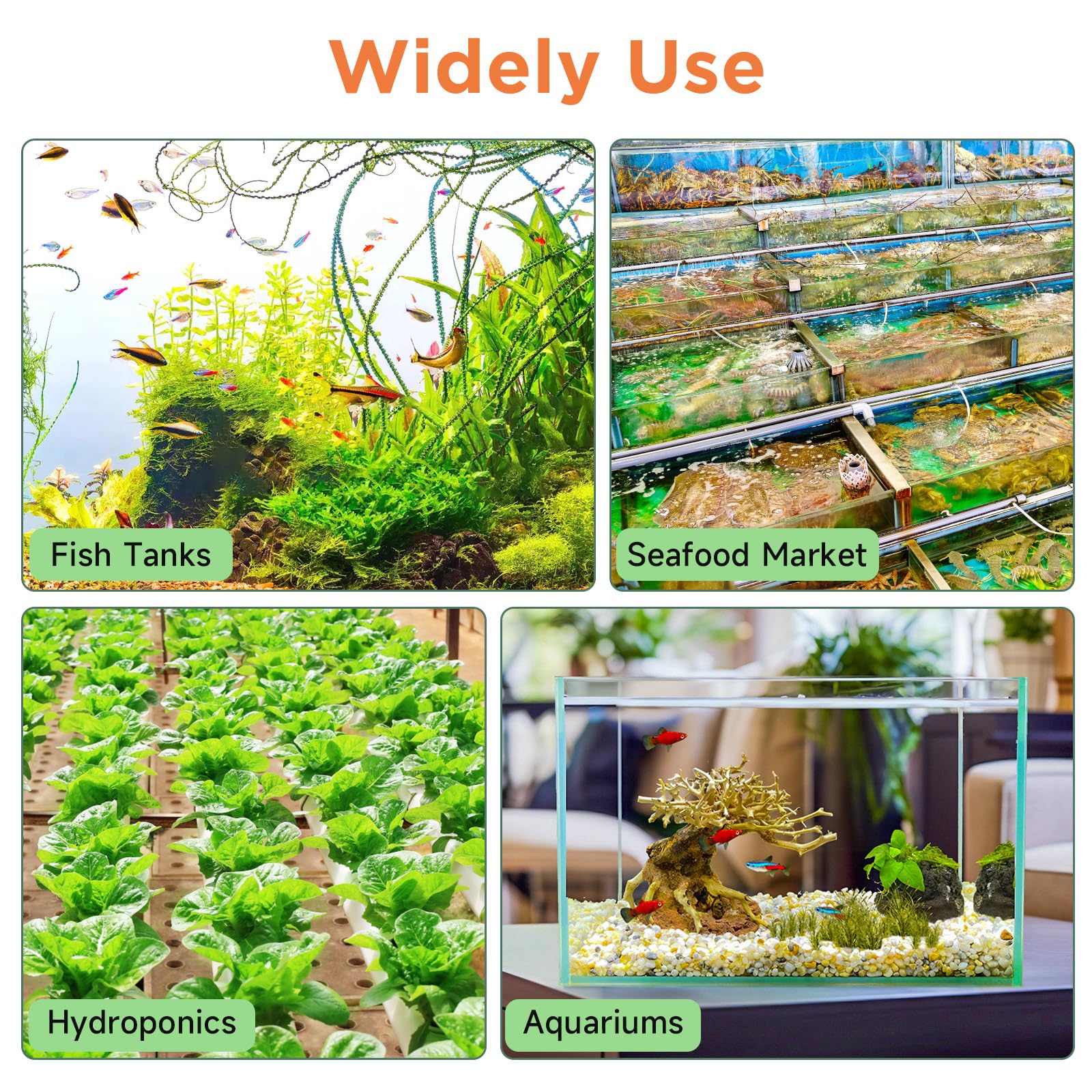 - High Dissolved Oxygen Rate: The blue control valve allows you to adjust the intensity of air bubbles. Fish tank bubbler can release smaller, denser and more uniform bubbles, increase oxygen levels while reduce carbon dioxide levels, and raise the pH value. Ultra-fine pore design, even after a period of time, will not cause a decrease oxygen released due to floating objects in the water clogging up the pores.