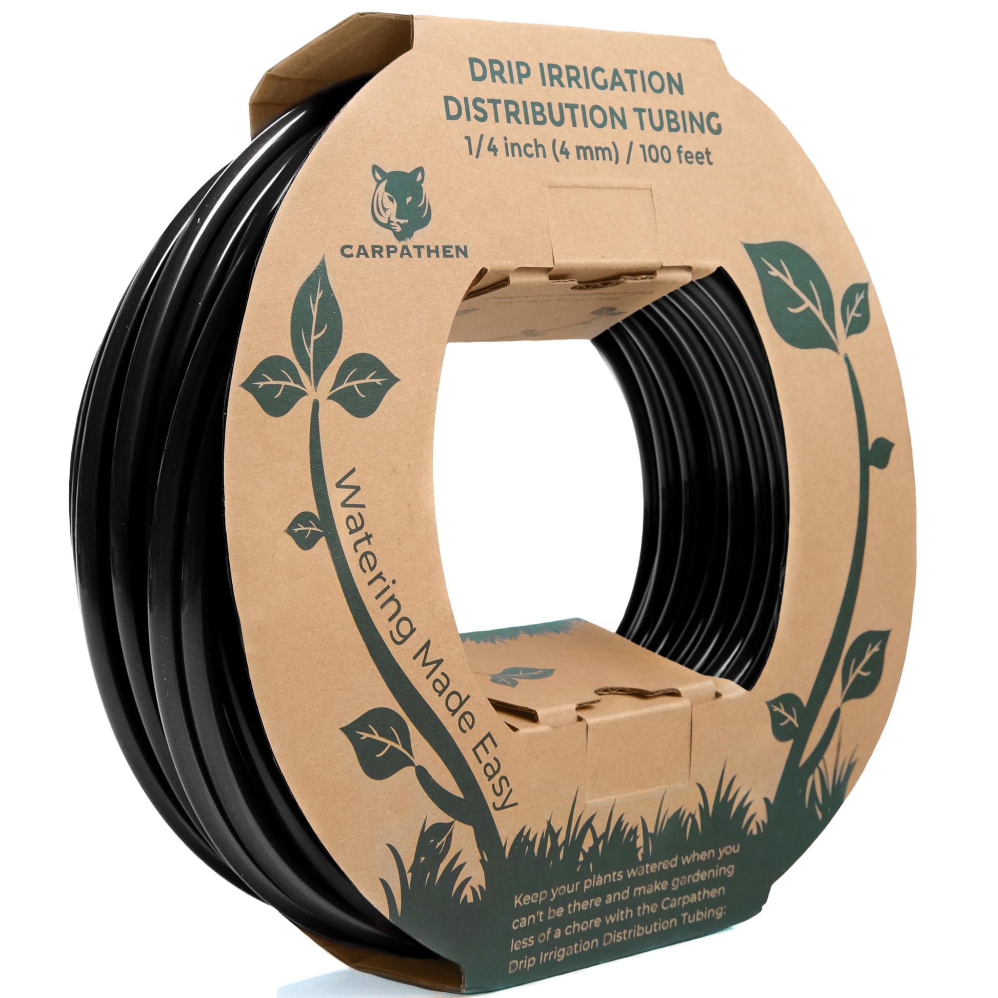 CARPATHEN 1/4 Drip Irrigation Tubing - 100 ft Black Drip Irrigation Hose Perfect for DIY Garden Irrigation System, Hydroponics, Misting Tubing, or as Blank Distribution Tubing for Any Garden Project