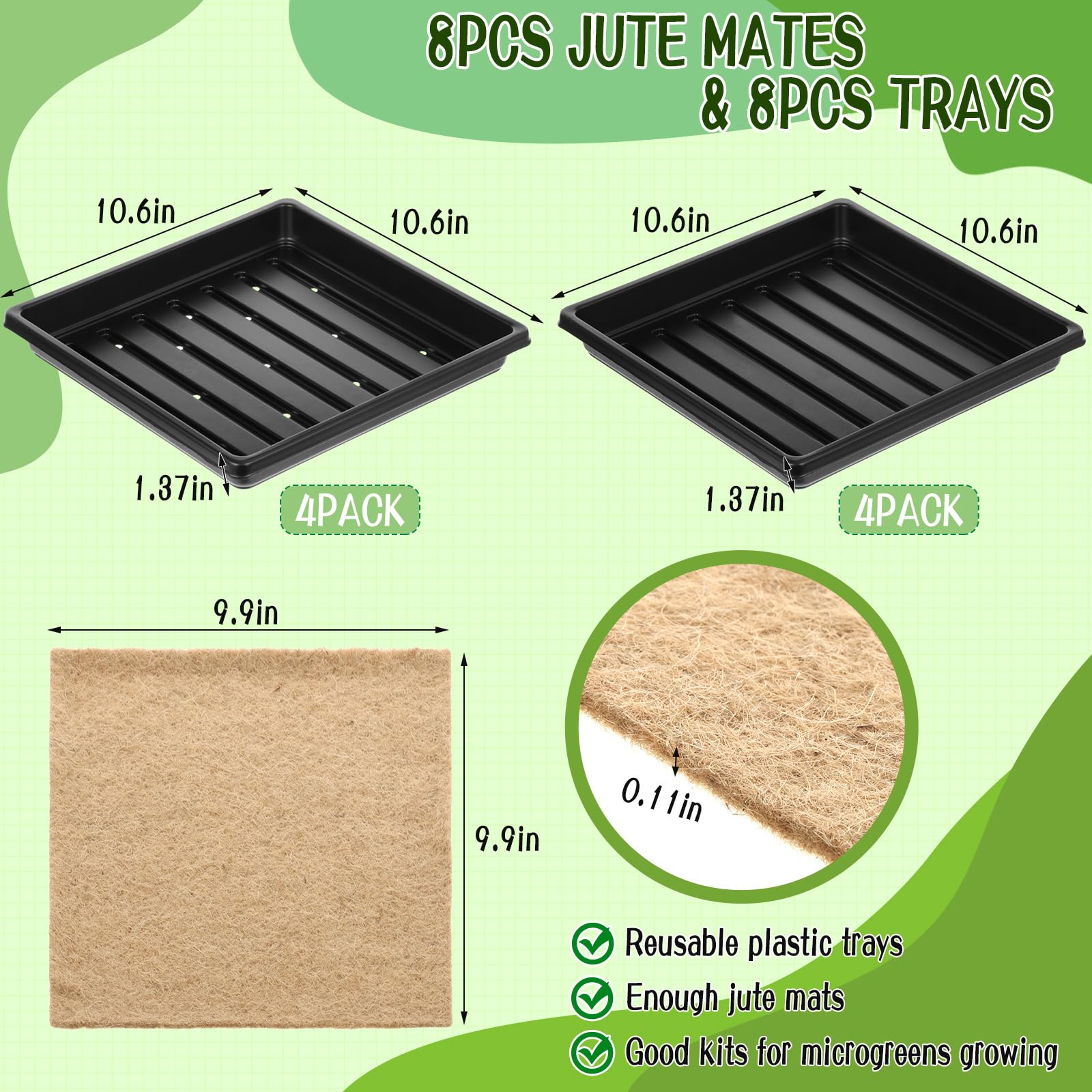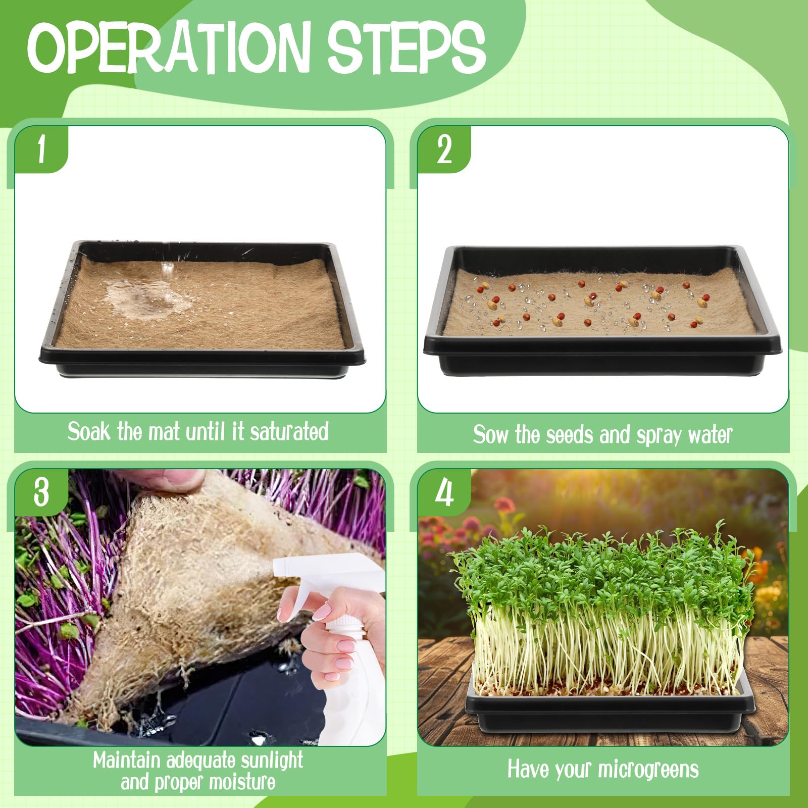 - Durable Material: These microgreen mats are made of pure natural hemp fiber, durable and breathable; The microgreen trays are made of high-quality plastic and are reusable