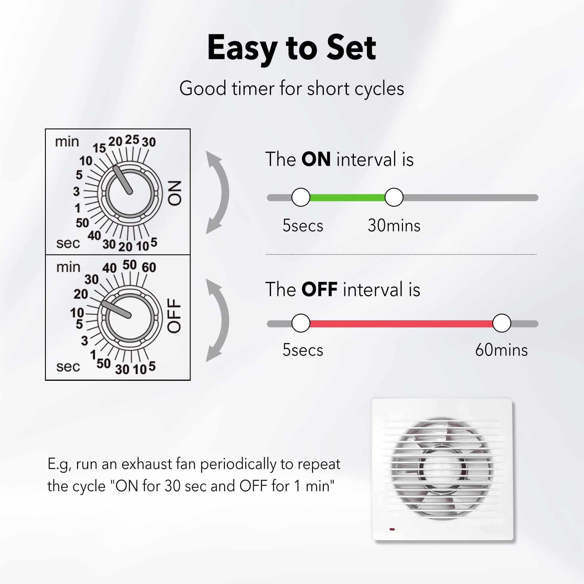 - ✓ On & Off Cycling: Set your appliance to cycle on and off at intervals, with “on” durations between 5 seconds and 30 minutes, and “off” durations between 5 seconds and 60 minutes.