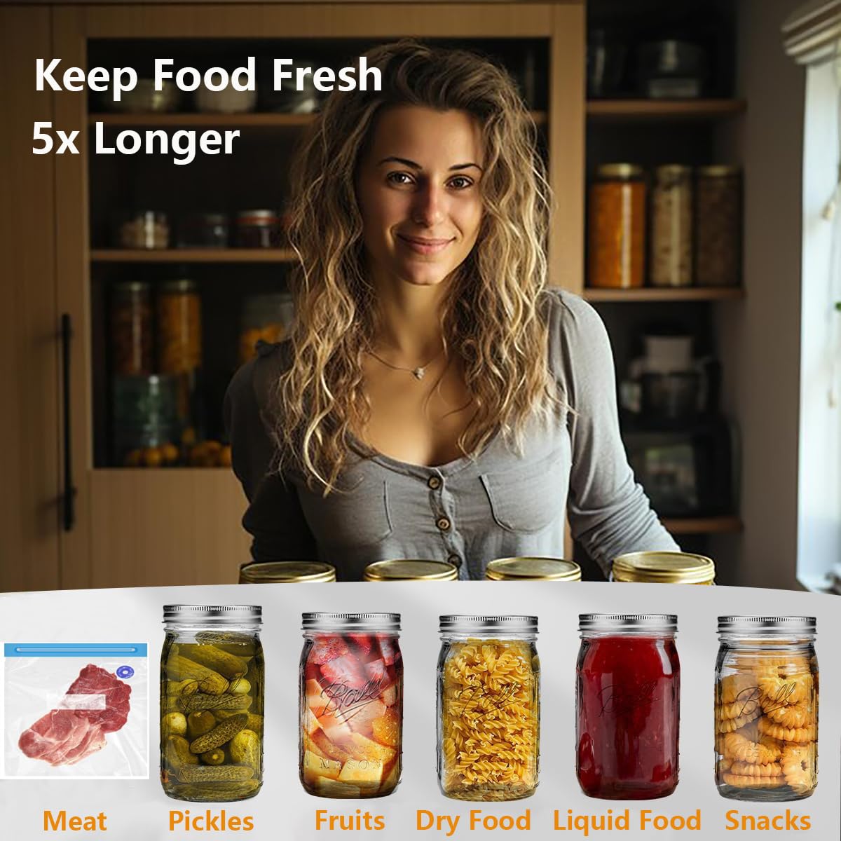 Electric Mason Jar Vacuum Sealer, Upgraded Automatic Vacuum Sealer Kit for Wide and Regular Mouth Mason Jars, Handheld Vacuum Bag Sealer for Food Preservation