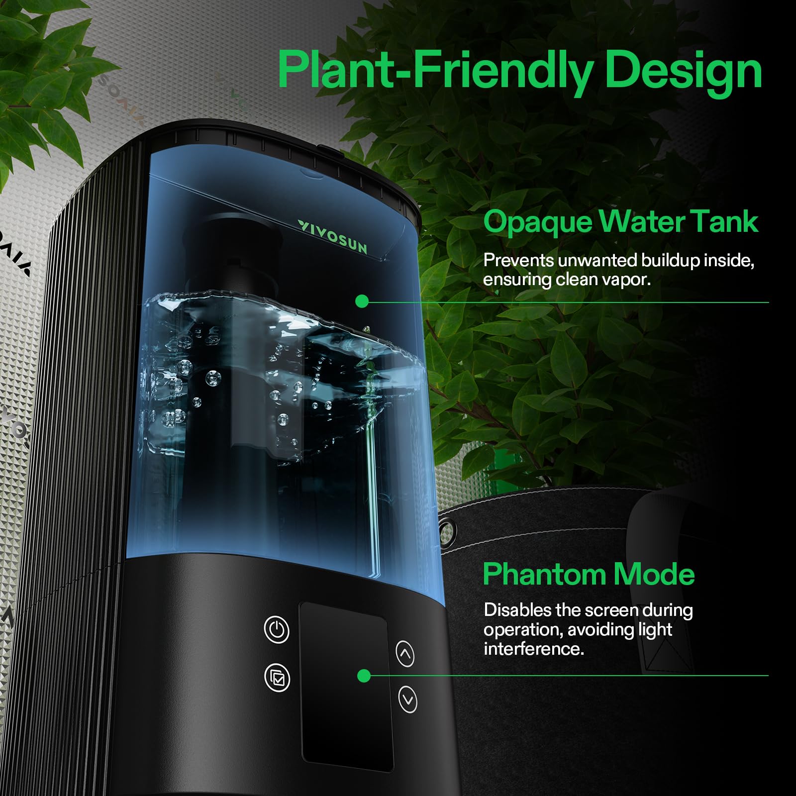- Plant-Friendly Design: Phantom mode disables the screen during operation, avoiding light interference that could disrupt plant growth; The opaque water tank prevents unwanted buildup inside, ensuring clean vapor for your plants